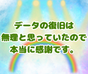 iPhoneを風呂に落としてしまい、絶望的でしたが、無事に直していただきました。データの復旧は無理かと思っていたので、本当に感謝です。ありがとうございました。