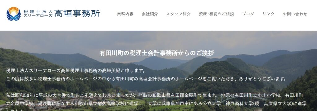 有田川町の高垣会計事務所は、地元出身の6名で運営する地域密着の会計事務所です。相続税や贈与税などの事前対策を通じて、お客様の安心を支えています。変化する経済環境の中でも、有田の皆さまの暮らしと地域の発展に貢献できるよう日々努めています。