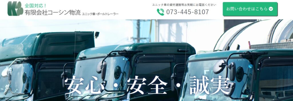 和歌山県に拠点を置く「コーシン物流」は、平車による資材の運搬を中心に事業を展開しております。ユニック車や重量物輸送トレーラー、長尺物対応のポールトレーラーなど多様な車両を揃え、近畿一円から中距離エリアまで柔軟に輸送対応いたします。輸送のご依頼・ご相談は、どうぞお気軽にお問い合わせください。