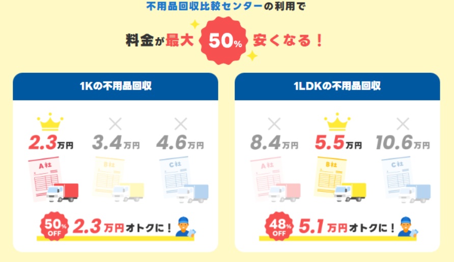 全国で不用品回収比較業者をお探しの方は、不用品回収比較センターのご利用を検討してみてください。