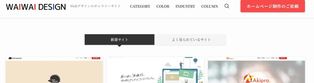 WAIWAI DESIGNは、ホームページのデザインギャラリーをまとめたサイトです。ホームページのデザインや制作をこなう際に、参考になるサイトを探した場合に活用できます。