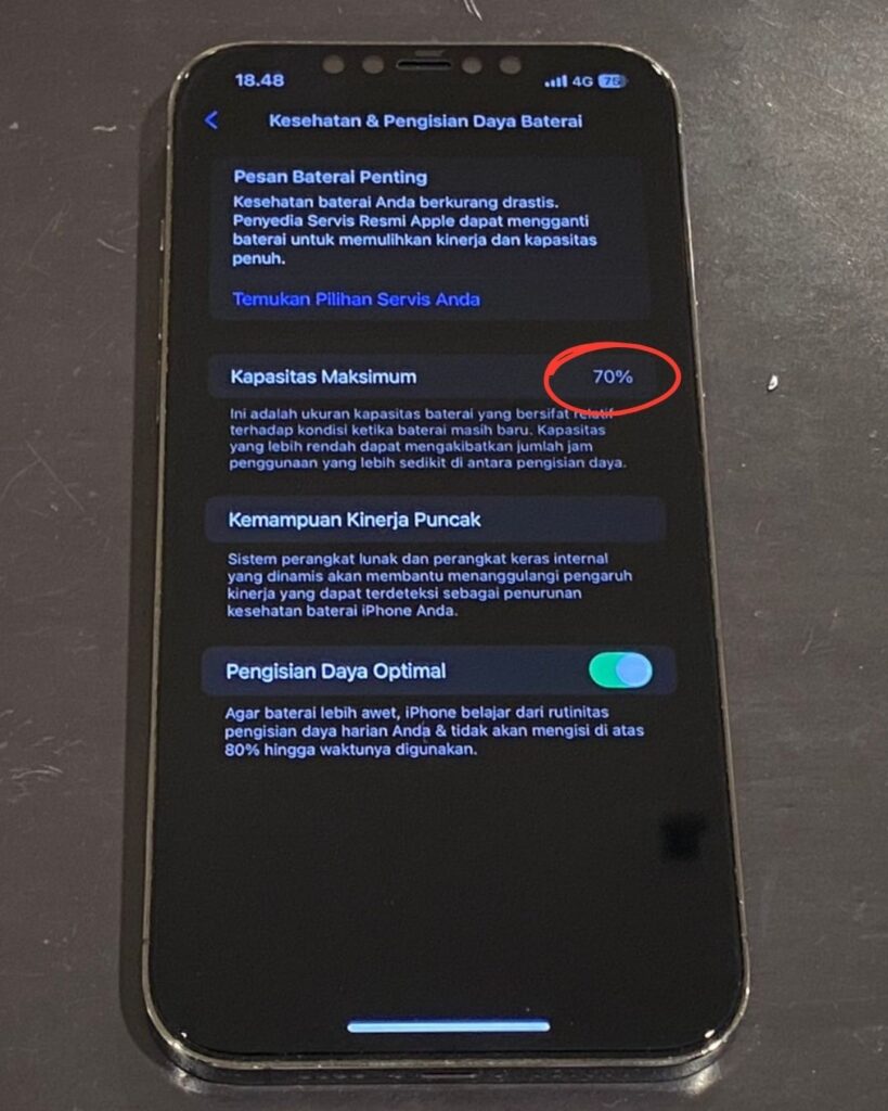 今回修理するiPhoneはバッテリーの最大容量が70%とかなーり劣化が進んだものとなり、1日に何回か充電をしないともたないものでしょう。(使い方にもよります。)