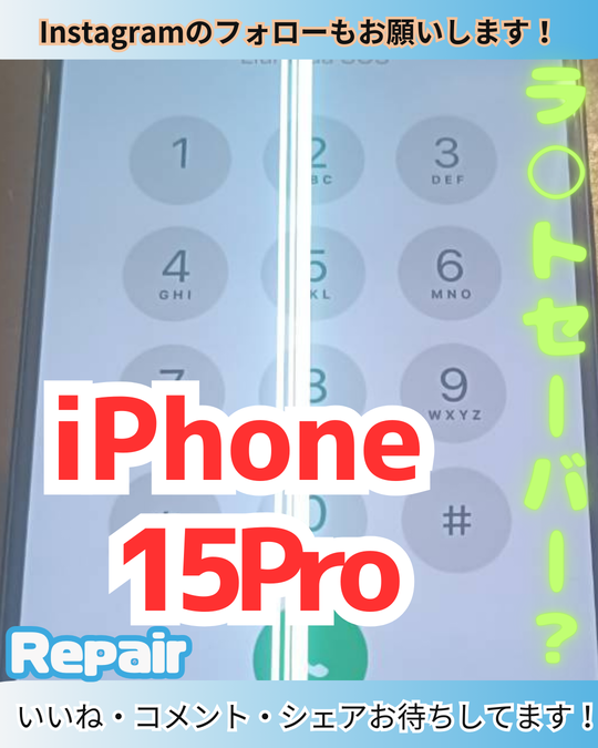 先日iOS26が発表されましたね。11シリーズも対応されるようでまだまだ使っていけるモデルですが、発売からしばらく経ち、バッテリーの持ちも不安になる頃ではないでしょうか? 当店では11シリーズのバッテリー交換も承っており …投稿日:2025-10-01画面に光線が!?【iPhone15Pro】