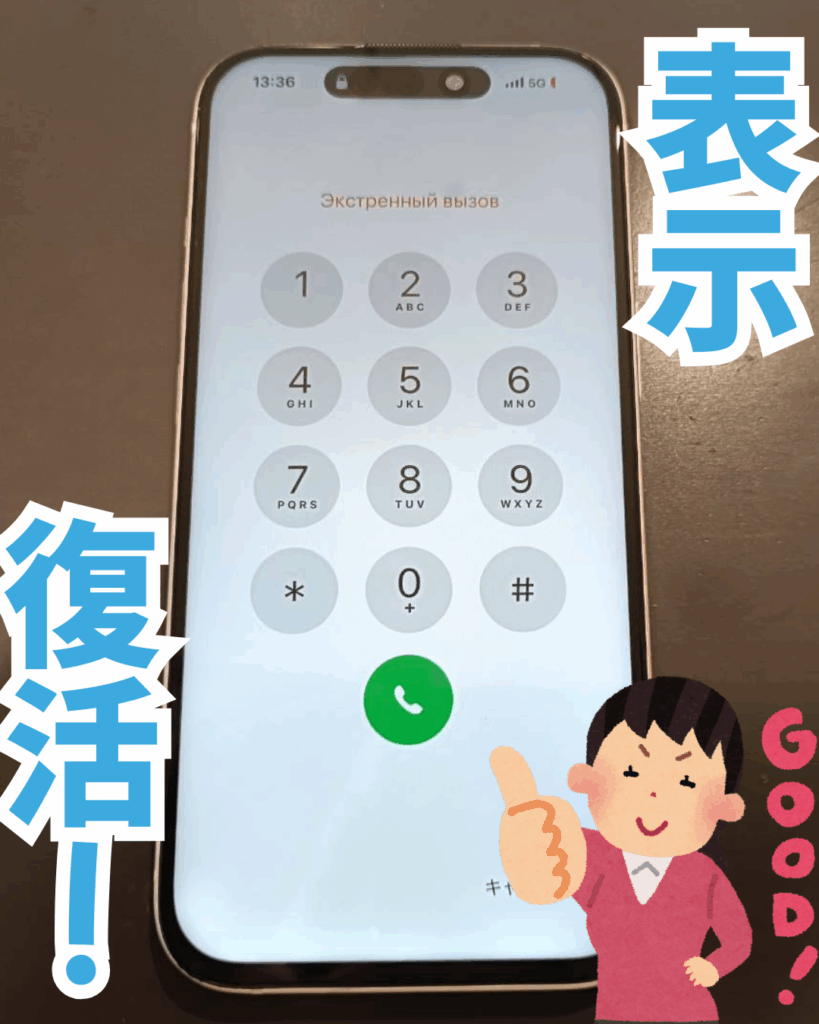 iPhone15は有機ELディスプレイが採用されているので、当店で取り扱っているLCDディスプレイの場合、交換後の色合いが若干変化しますがお客様に確認していただいた所、むしろキレイになったと喜んでもらえました。
