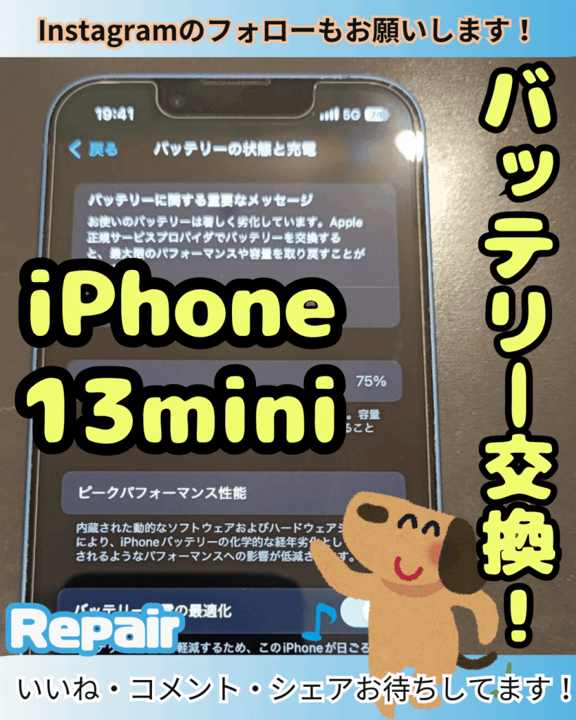 どうせなら大容量!miniシリーズのバッテリー交換!【13mini】
