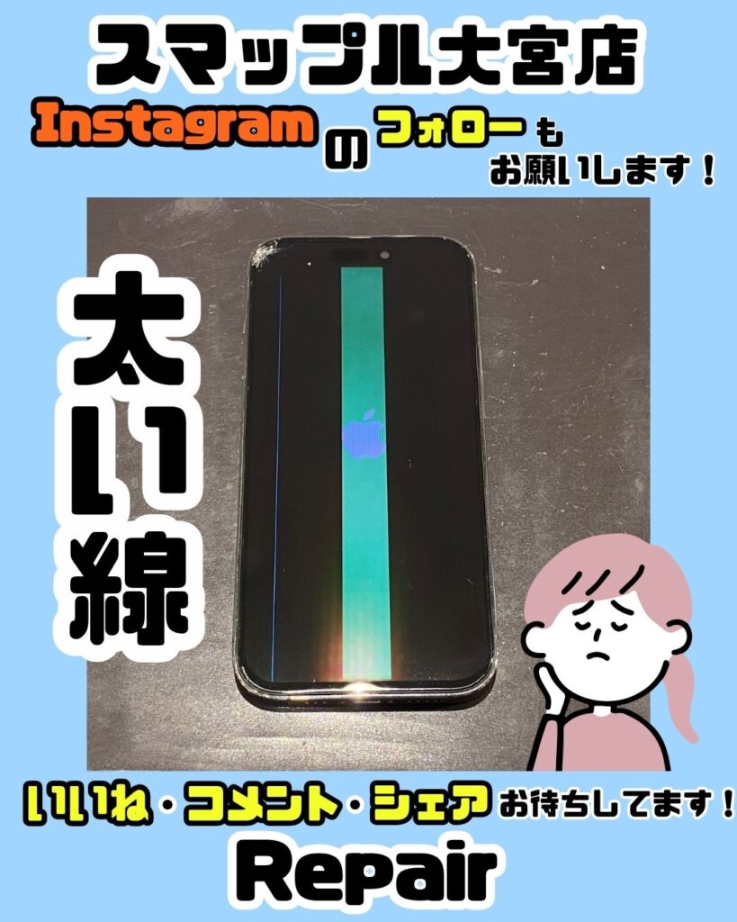 【iPhone14Pro】画面中央に緑色の太い線が…!即日画面交換はスマップル大宮店!