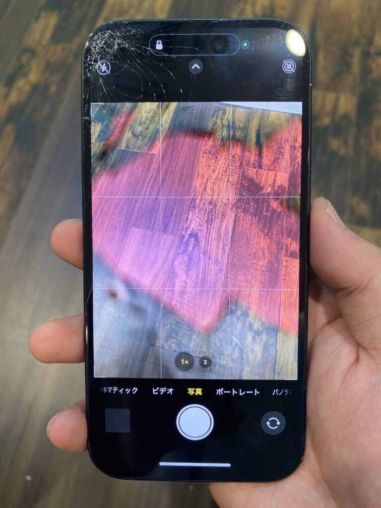 カメラアプリを割れて変色しているように映る!?これって壊れてるの…?