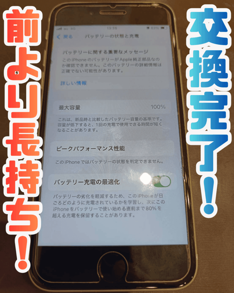 「最近バッテリーの減りが早くて、一日に何度も充電しないと不安⋯」と、深刻なバッテリー持ちの悪さにお困りのご様子でした。