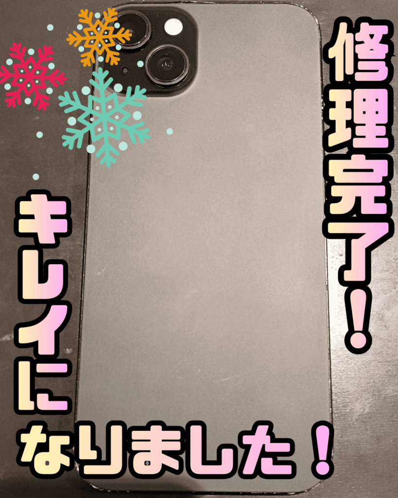 こちらが修理後のiPhone15Plusになります。新品のようにキレイになりましたね。