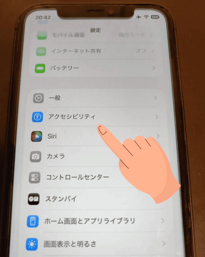 そして設定アプリ内にある項目の中から「アクセシビリティ」をタップ。