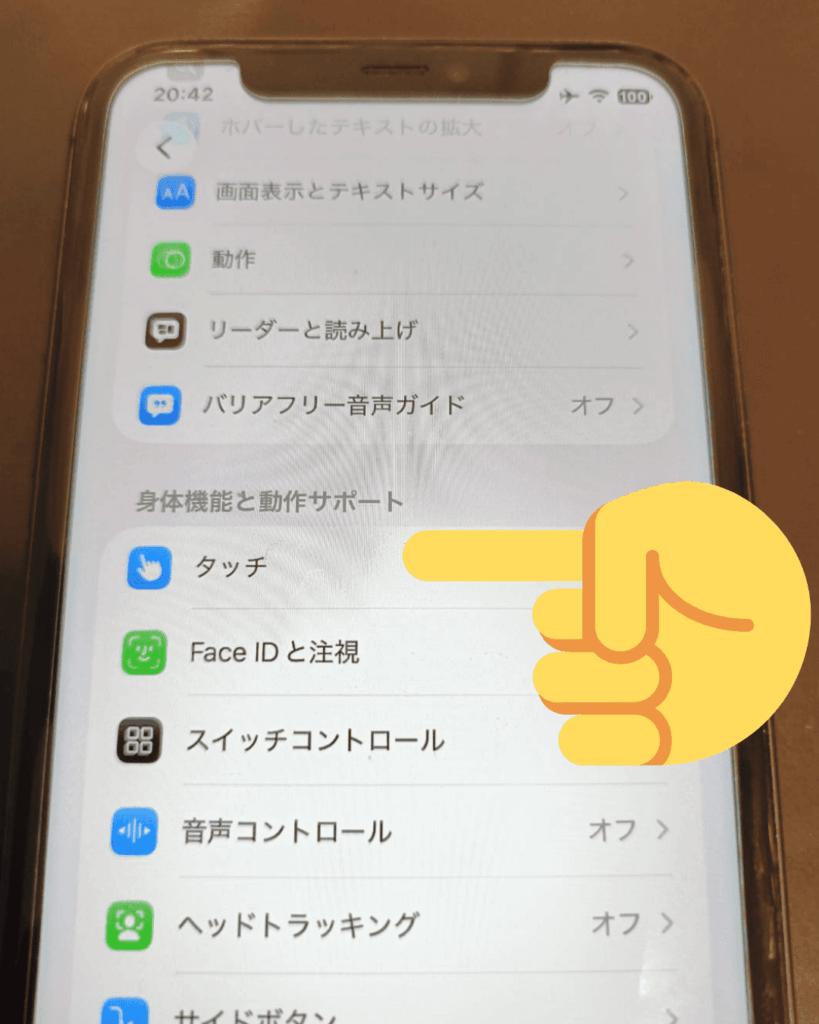 また色々と出てきて混乱しそうですが、「身体機能と動作サポート」の欄から「タッチ」を選択しましょう。