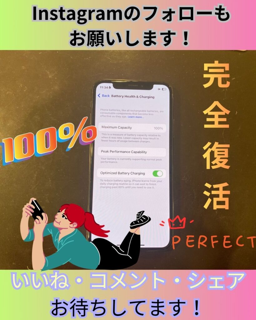 先程のiPhoneXmoバッテリー交換をすることでこの様にMaximum Capacityが100%に戻ってくれました。