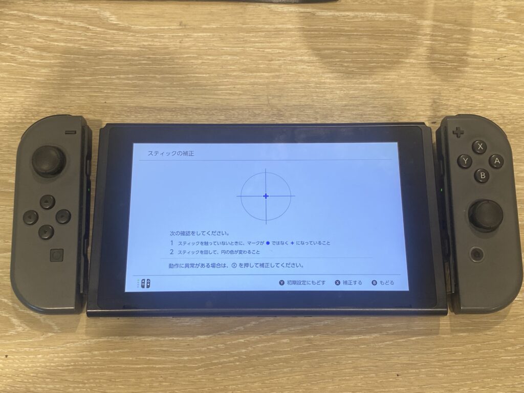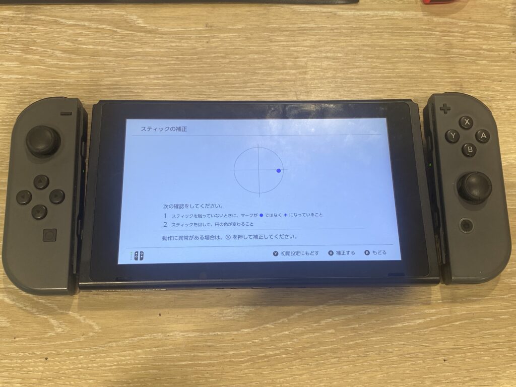こちらのSwitch、Joy-Conのアナログスティック設定を行う画面にしている状態なのですが、どこか違和感があるのがお分かりでしょうか。