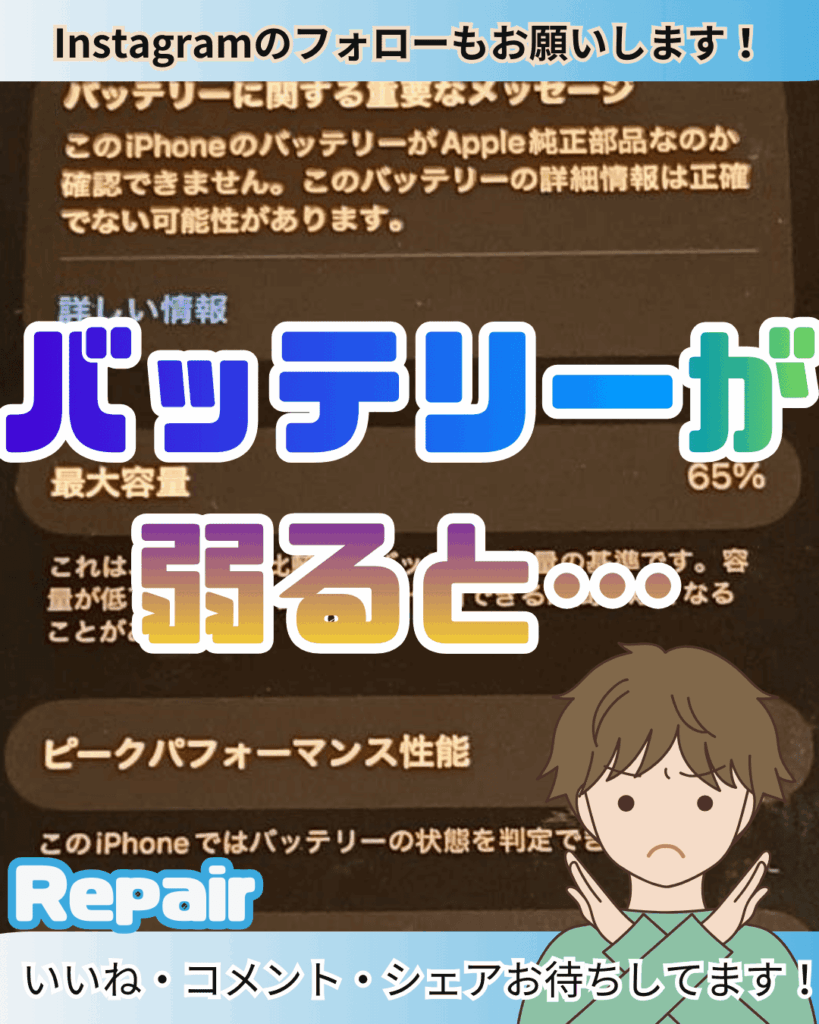 今回は弱ったバッテリーを使い続けるリスクを修理の実例と共にご紹介します。それではどうぞ!