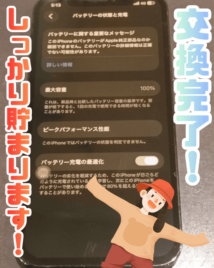 お預かりした12Proもバッテリーを交換し最大容量100%!