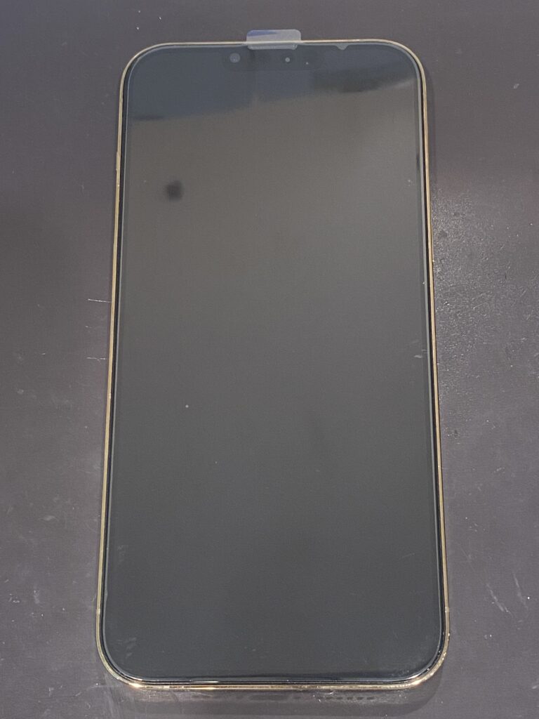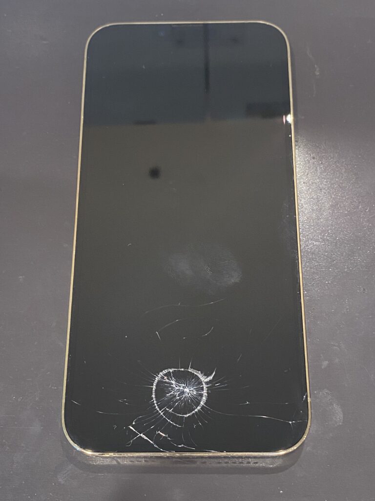 こちらのiPhone13ProMax、お分かりの通り画面の下側が割れており、かなり強い衝撃だったのかその割れは全方向に広がっていますね。