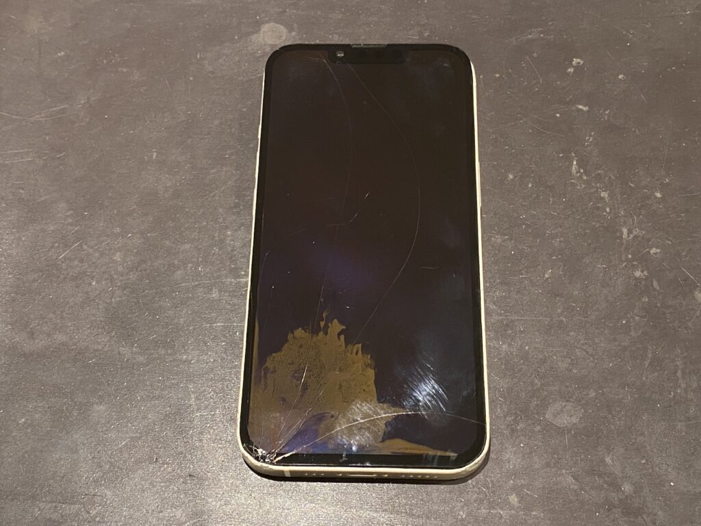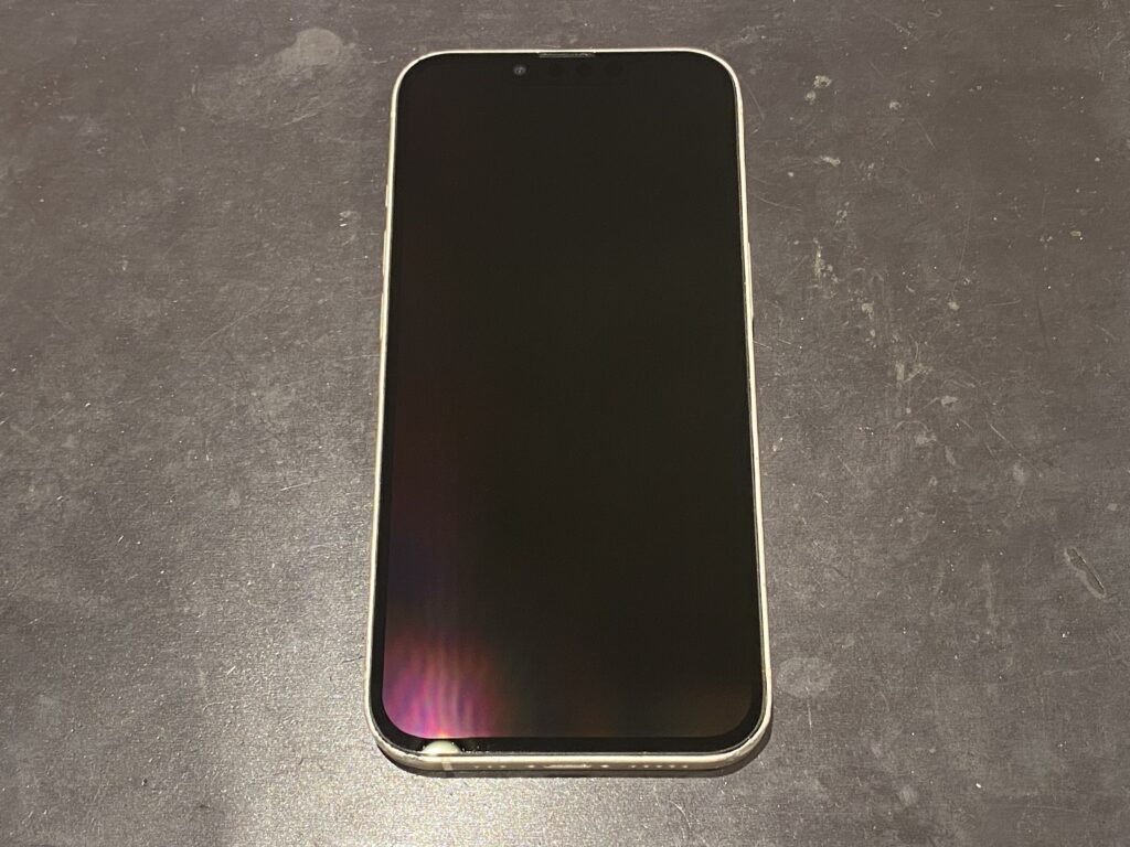 こちらのiPhone13、左下の一部が少し黄土色っぽく変色しているのが確認できますね。