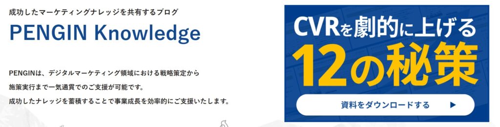「PENGINコラム」は、Webマーケティングの専門会社・株式会社PENGINが発信するブログです。コンバージョン率改善、SEO、LP改善などのテーマで具体的な施策や事例を紹介し、サイト運用・改善に役立つ知識を提供しています。キーワード検索機能で目的の記事を効率的に探せるのも特徴です。