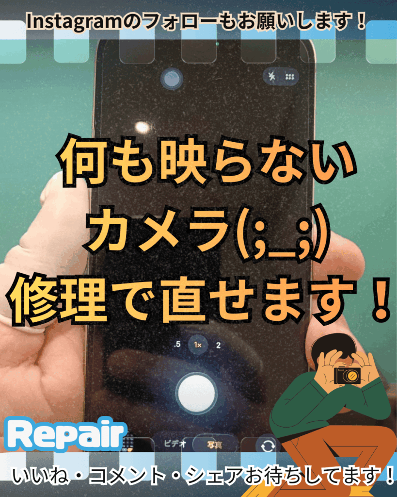 年々高性能になっていくiPhoneのカメラ。プライベートはもちろんお仕事で使われている人もおり、もはや必要不可欠な機能ですが、カメラパーツはiPhone内部のパーツの中でも特に精密な部品です。ちょっとした衝撃や圧力で壊れてしまう事も少なくありません。