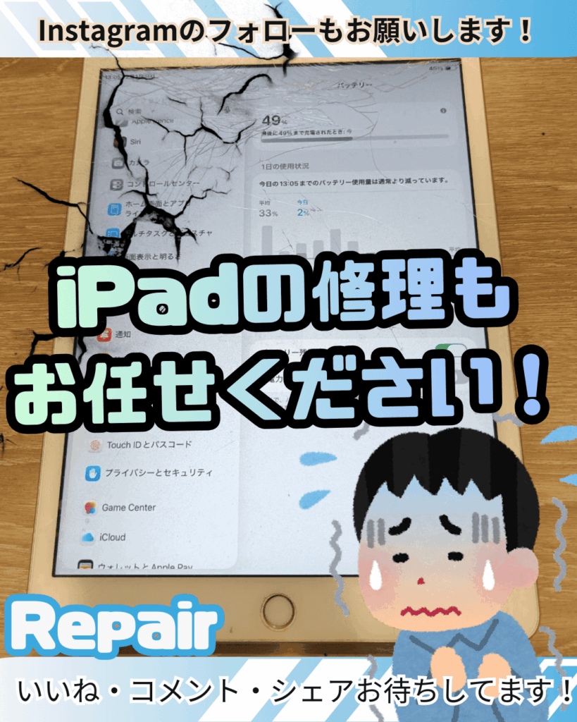 当店ではiPhone以外にもiPadのご依頼も承っております!