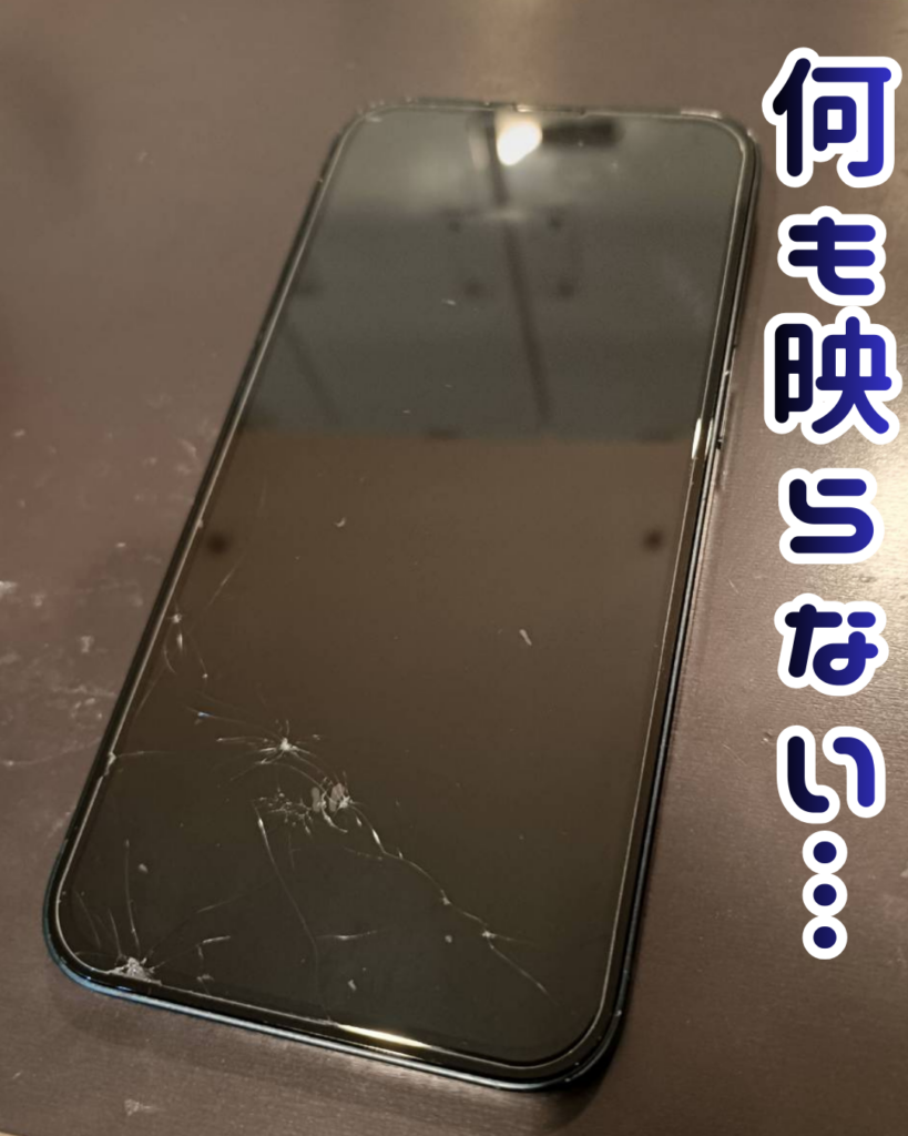「画面はバキバキだし真っ暗、もう買い替えるしかない・・・」