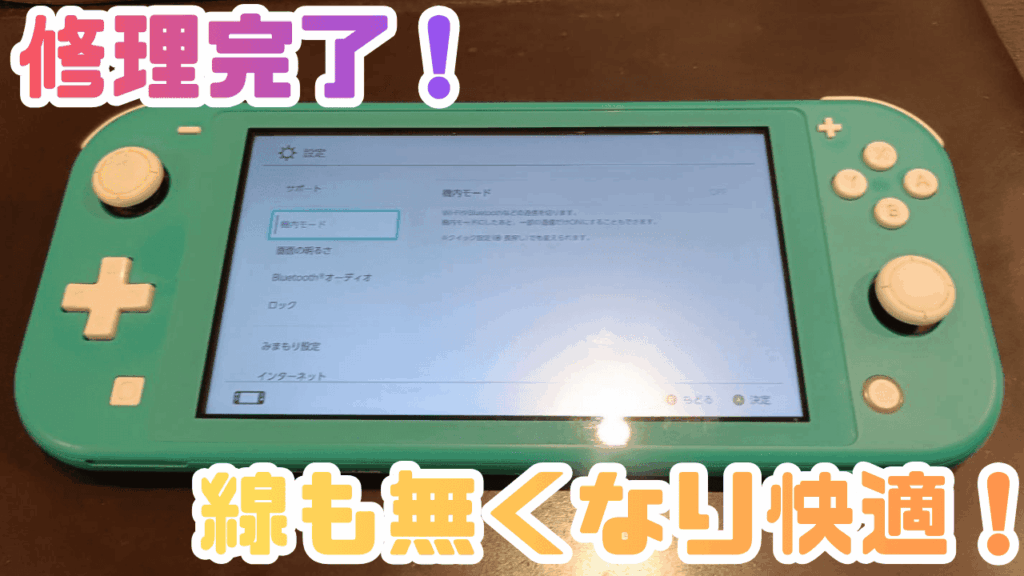 修理後のSwitch Liteは、あの縦線だらけの画面が嘘のように、クッキリと鮮やかな映像が戻りました。