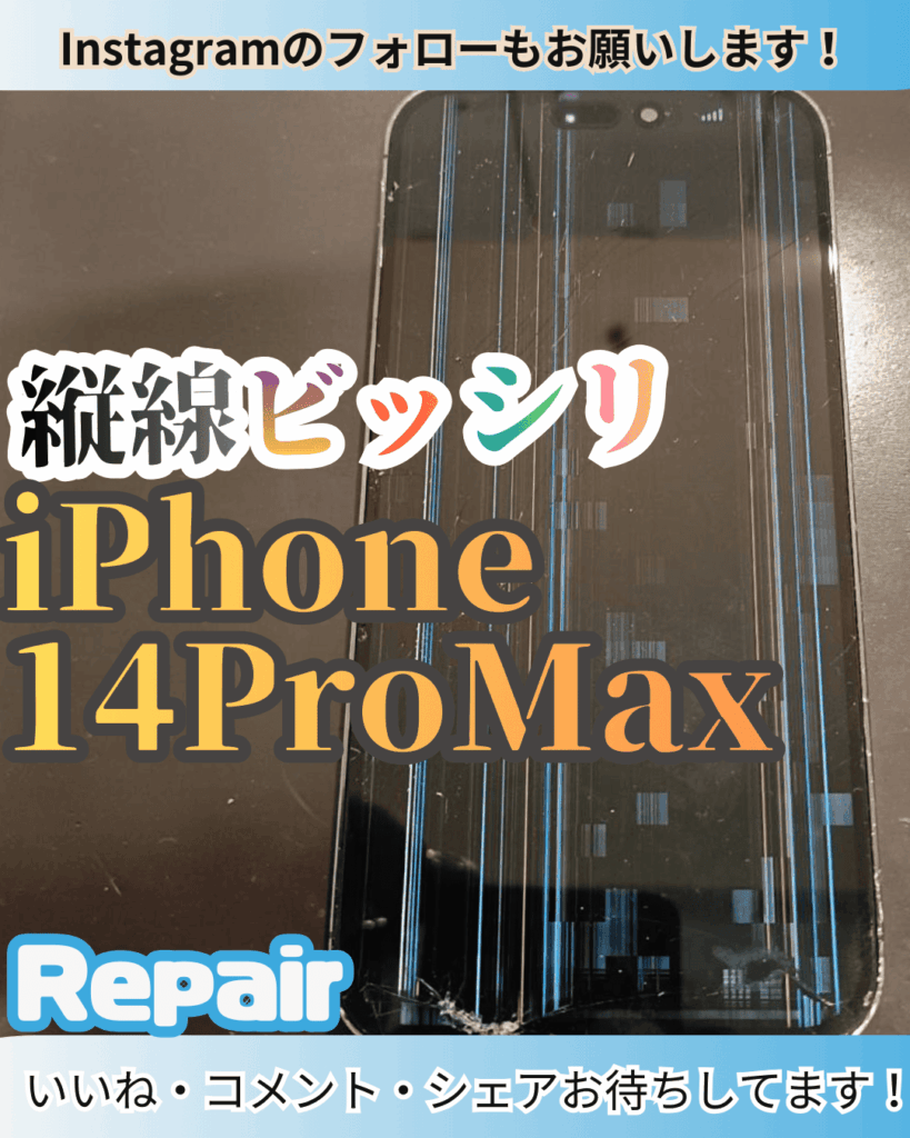 【14ProMax】画面全体を覆う表示異常はすぐ修理へ出しましょう。