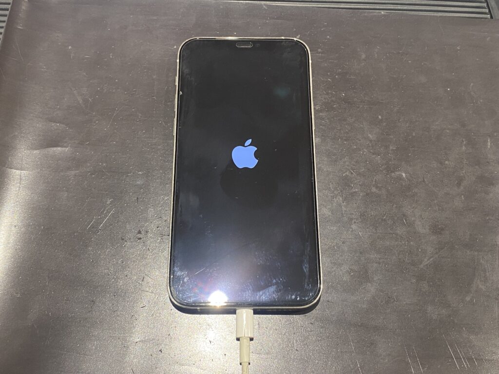 こちらのiPhone12Pro、電源を入れるとこのようにリンゴループになって操作出来ない状態で、調査をしてみると、原因はバッテリーの劣化によるものと判明しました。