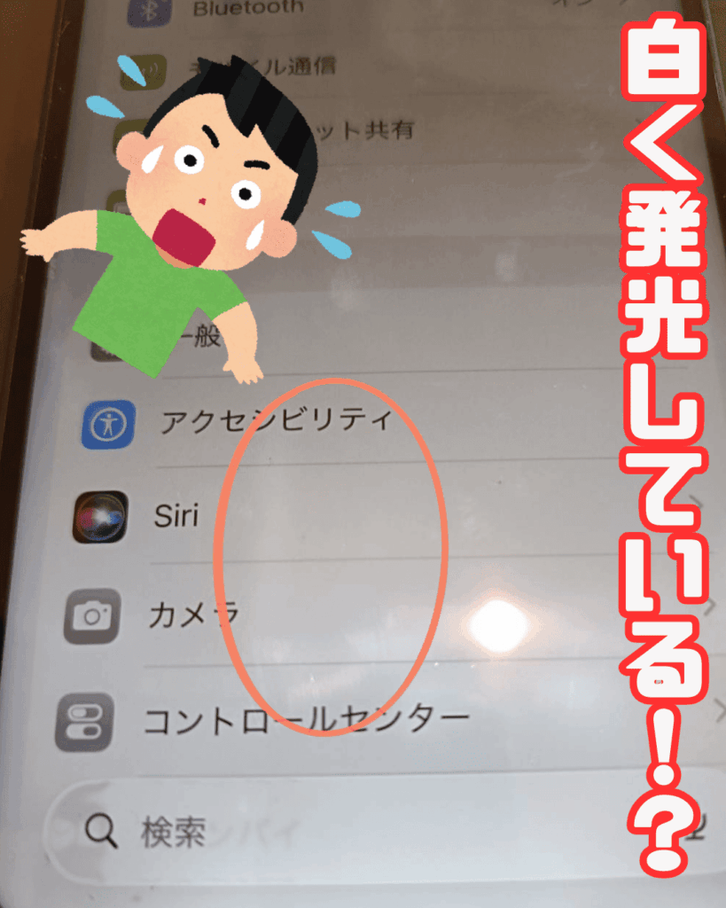 さらに観察してみると、画面の一部にうっすら発光しているところがあります。