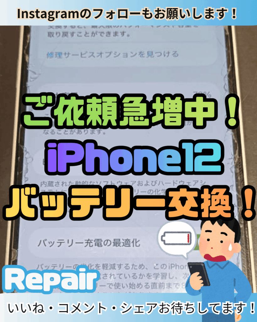 ご依頼増えてます!iPhone12のバッテリー交換受付中!