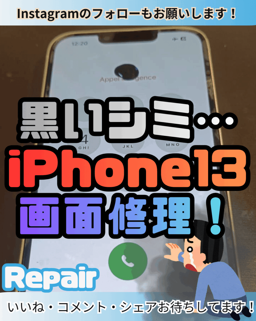 【iPhone13】画面に出てきた黒いシミ。広がる前にパパッと修理!