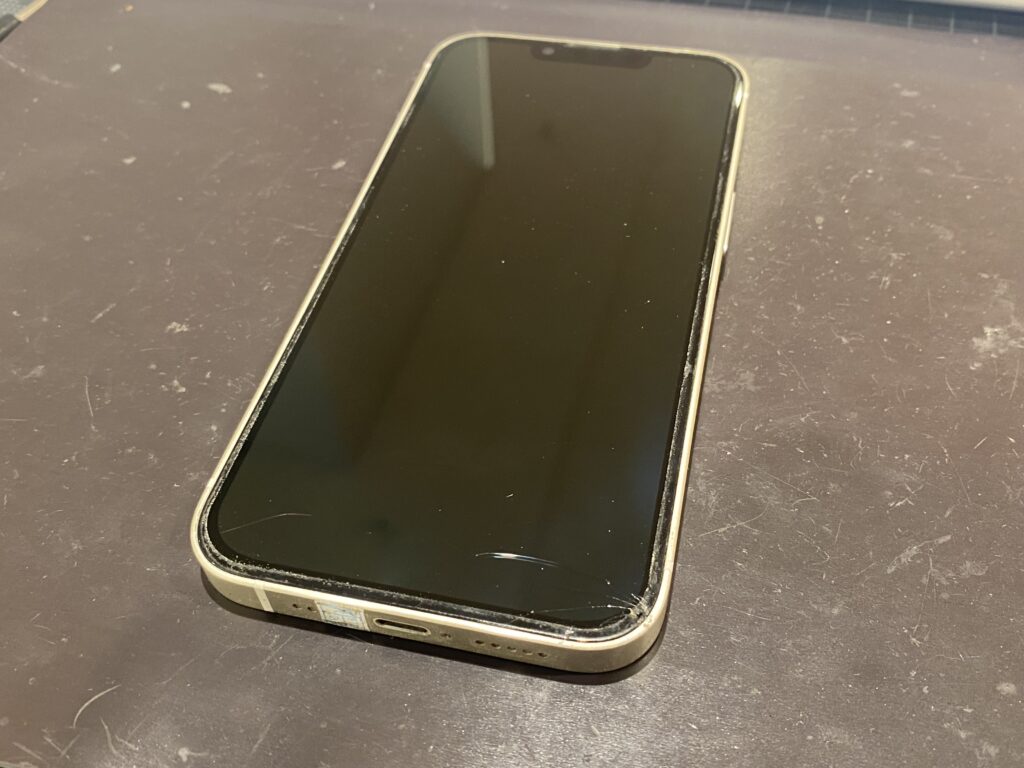 こちらのiPhone13も例外ではなく、下側に数本のヒビが確認できます。